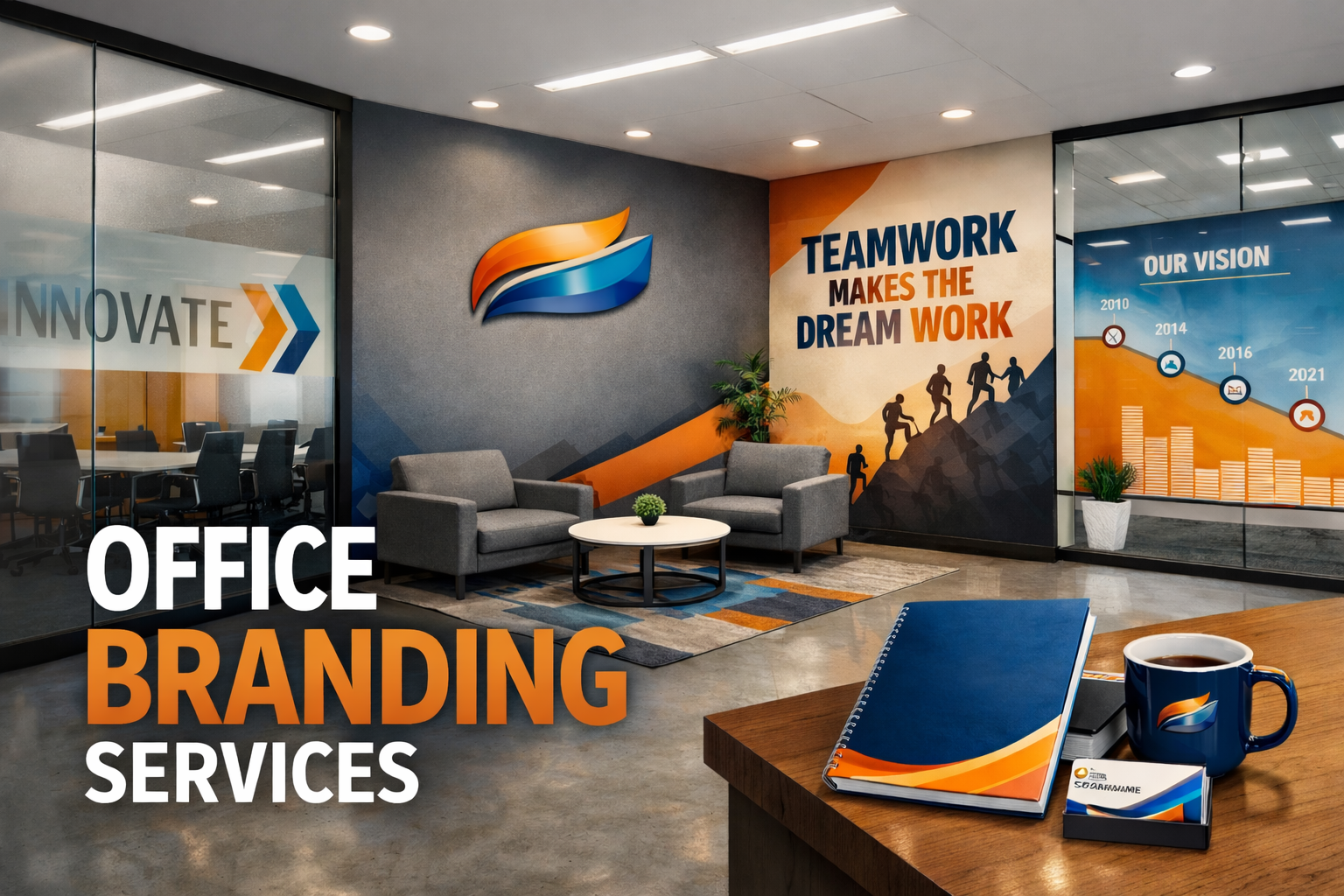 Whether you want to create a professional office environment or promote your business on the road, our branding solutions combine creativity, high-quality materials, and expert installation to deliver lasting impressions.